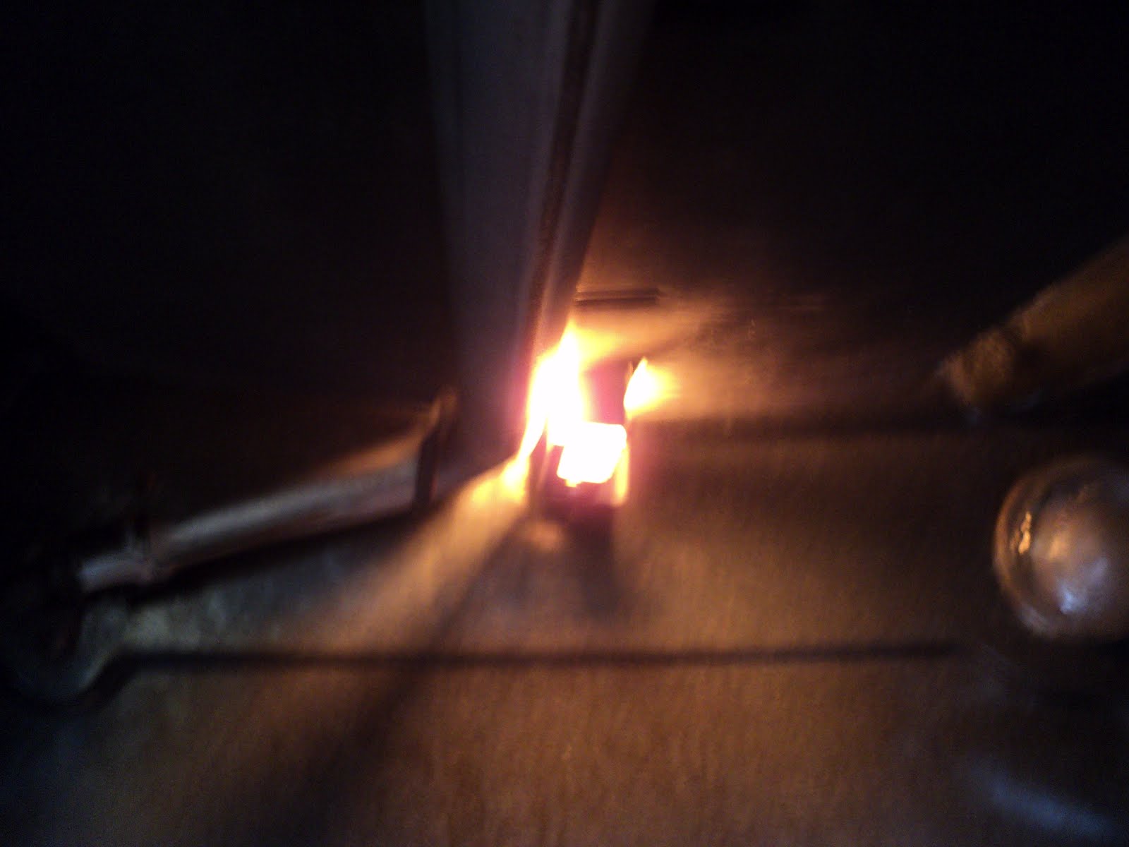 Anyway, everything appears to be working. The glowing ignitors don't photograph well, but here's a view of the broil ignitor just before the gas valve has opened.